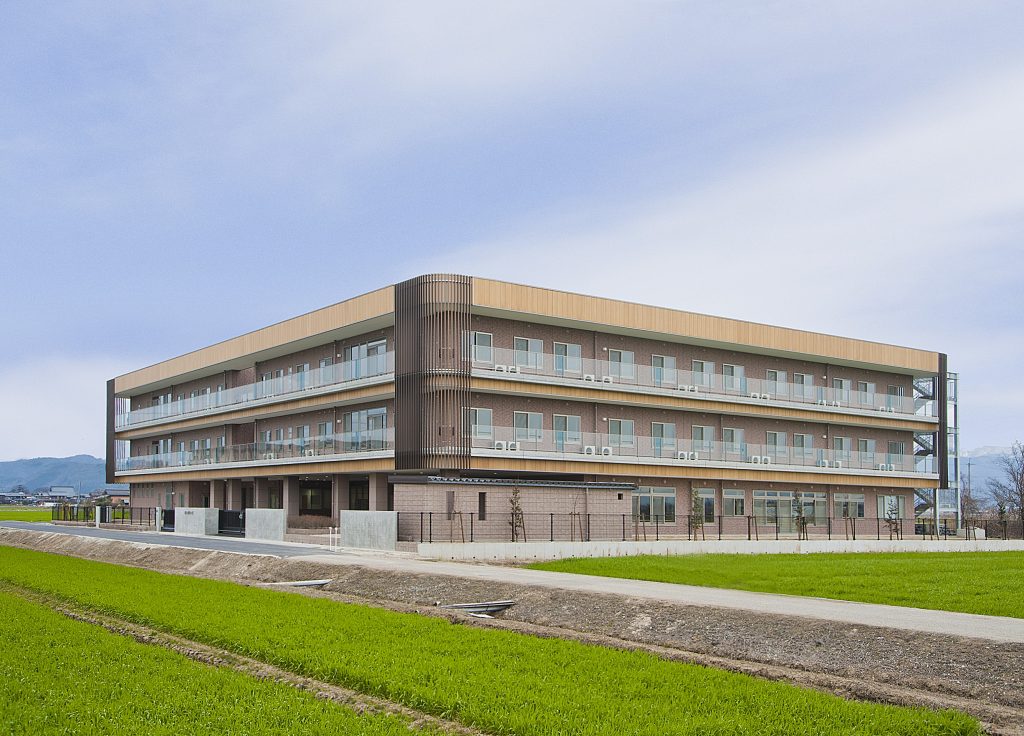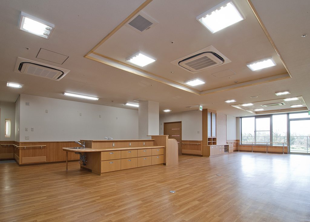 ユニット型特別養護老人ホーム80床の新築工事です。環境豊かな立地に位置し、建物からの琵琶湖や伊吹山山系がパノラマの様に望めます。中庭にも面するユニット内の居間食堂は非常に明るいスペースとなっています。入所者の個室には洗面設備はもちろんのこと全室トイレ付です。